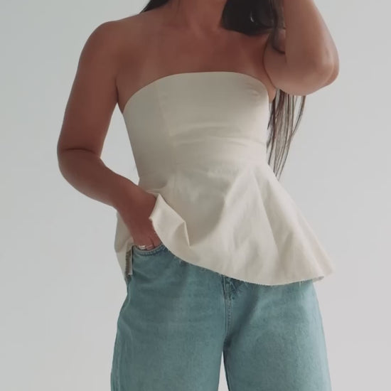 A strapless peplum top with a flattering, corset-style fit, the Nova Top is designed to sculpt and soften in all the right places. Crafted from a soft, structured blend of Lyocell and linen, it holds its shape while remaining breathable and wearable.