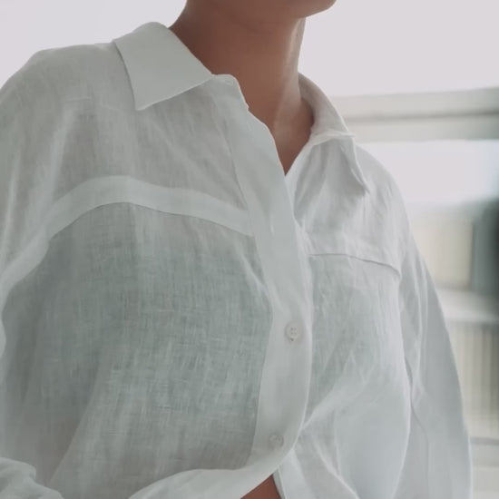 A timeless warm-weather essential, the Selene Shirt in Salt is cut from 100% linen for effortless breathability and texture. The silhouette is relaxed and slightly oversized, perfect for layering over swimwear or pairing with denim for everyday polish.