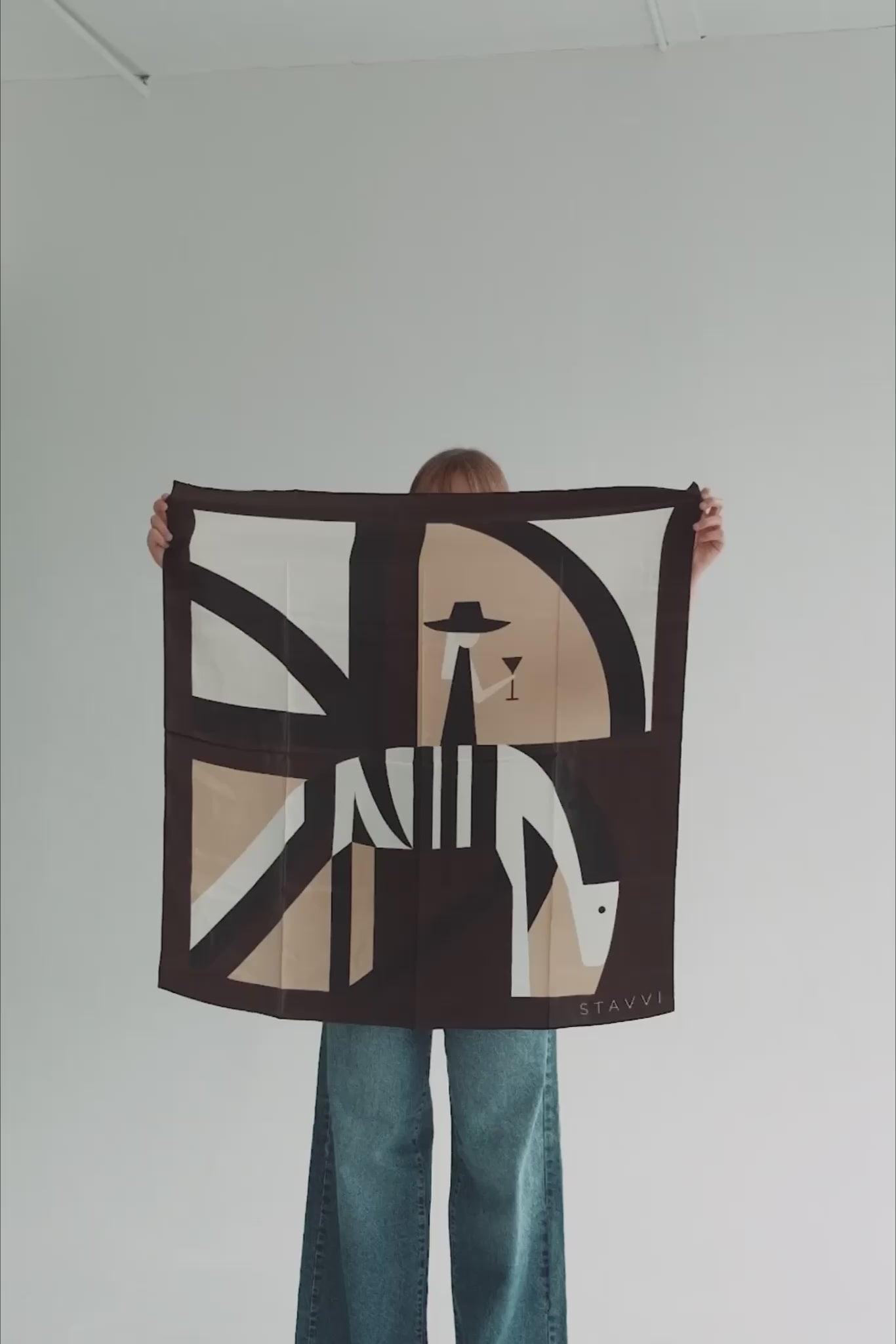 Whether worn around the neck, tied as a headscarf, wrapped at the waist, or styled on your favourite bag, this scarf brings colour and character to any look. The bold abstract print in brown, sand, off-whote and black is a nod to playful minimalism, perfect for dressing up or down